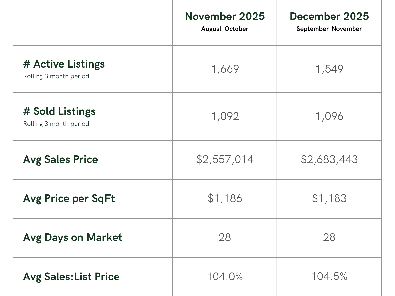 My outlook for 2026 is one of cautious optimism. Barring a major economic event, I anticipate a return to more normalized seasonal trends. The core demand remains incredibly strong, and as buyers adapt to the new interest rate environment, we expect to see them return to the market in force. For sellers, proper pricing and strategic marketing will be more crucial than ever to capture buyer attention.